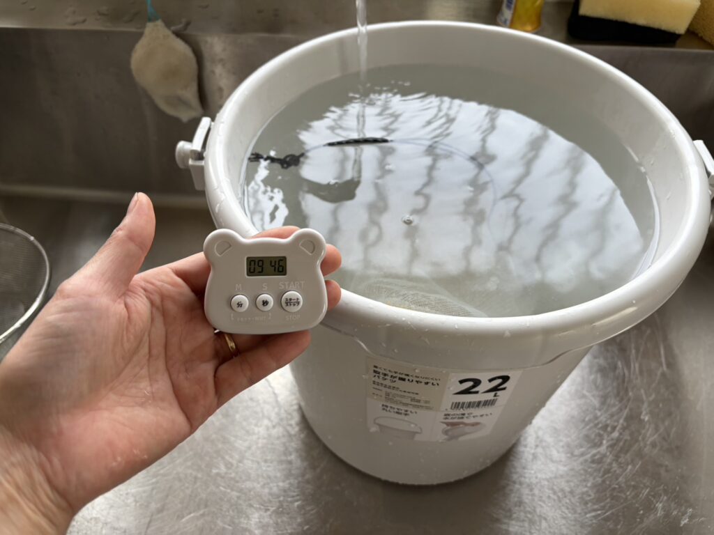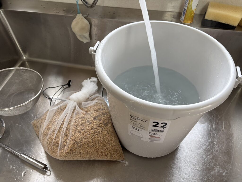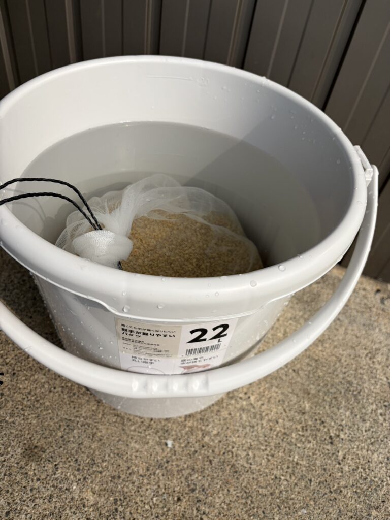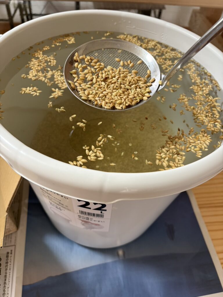 その後、バケツに移して浸水(浸種)へ。